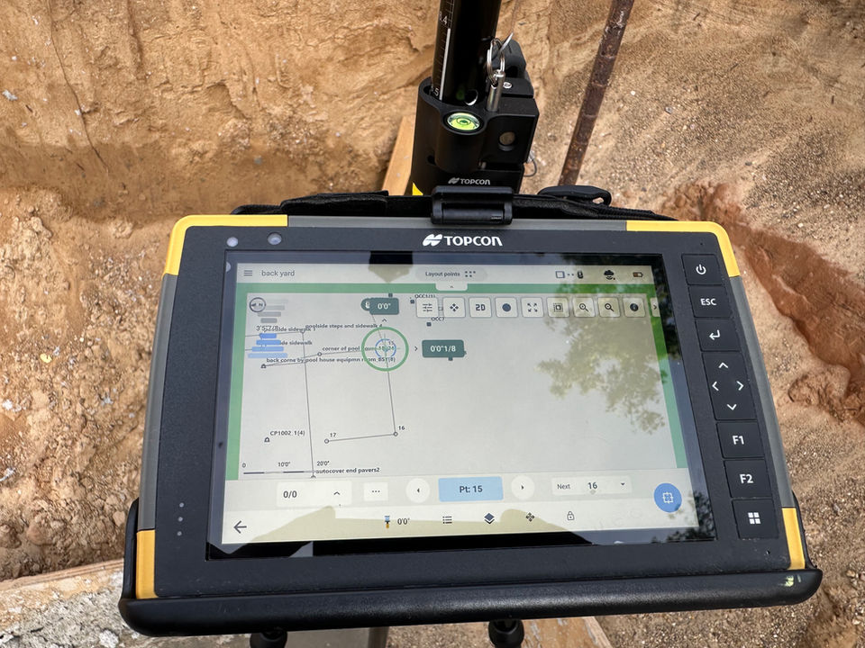 We perform detailed site measurements and layout using professional survey-grade equipment to capture grades, elevations, drainage, and existing conditions accurately. This information is used to develop precise 2D layouts and fully scaled 3D designs that define how the space will function, flow, and connect — not just how it will look.